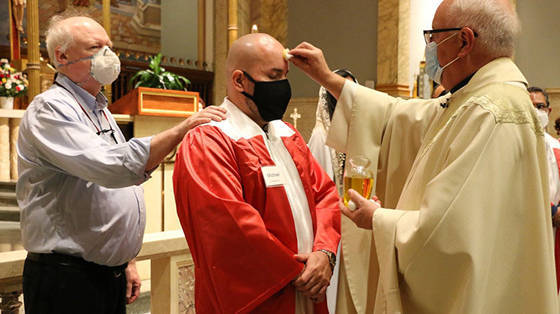 Sau đó, Đức Cha Pates đã thoa dầu xức lên trán của Galli. Ngài sử dụng một miếng bông gòn thay vì ngón tay cái của mình do COVID-19. Và cùng với nghi thức đó, Galli – người đã chọn tên Thánh là Phanxicô Assisi – đã chính thức trở thành một người Công Giáo.