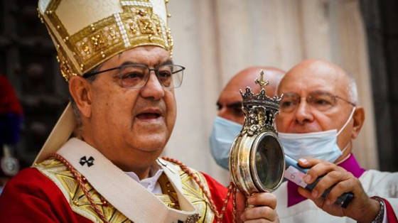 Đức Hồng y Sepe công bố máu thánh Januarius lại hóa lỏng tại Napoli ngày 19/9/2020 (ANSA)