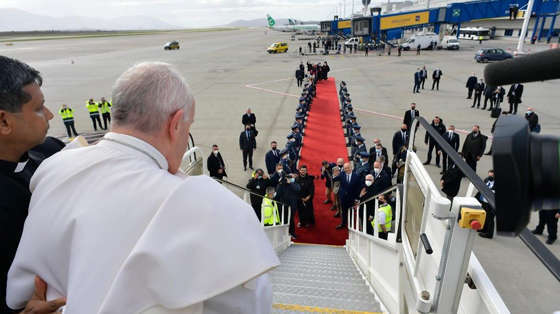 Sau đó Đức Thánh Cha đi qua hàng quân danh dự, chào các phái đoàn và bước lên máy bay.