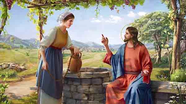 Chúa Giêsu trả lời: “Ai uống nước giếng này sẽ còn khát, nhưng ai uống nước Ta sẽ cho thì không bao giờ còn khát nữa, vì nước Ta cho ai thì nơi người ấy sẽ trở thành mạch nước vọt đến sự sống đời đời”. Người đàn bà thưa: “Thưa Ngài, xin cho tôi nước đó để tôi chẳng còn khát và khỏi phải đến đây xách nước nữa”. Chúa Giêsu bảo: “Bà hãy đi gọi chồng bà rồi trở lại đây”. Người đàn bà đáp: “Tôi không có chồng”. Chúa Giêsu nói tiếp: “Bà nói ‘tôi không có chồng’ là phải, vì bà có năm đời chồng rồi, và người đàn ông đang chung sống với bà bây giờ không phải là chồng bà, bà đã nói đúng đó”…