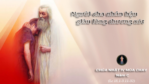 Suy niệm: Dụ ngôn người cha nhân hậu cho thấy Lòng Thương Xót của Thiên Chúa không mệt mỏi, dẫu trong thinh lặng đợi chờ. Thiên Chúa chạnh lòng trong im lặng khi thấy đứa con lên tiếng cướp quyền của mình, đòi chia gia tài. Thiên Chúa chạnh lòng trong im lặng, như người cha ngày ngày trông chờ con trở về, dõi mắt đăm đăm trông ngóng, nên thấy con trước từ xa, chạy đến ôm lấy con, hôn lấy hôn để như con đã mất nay lại tìm thấy. Sau thời gian đi hoang, đứa con trở về trắng tay! Tài sản đã hết sạch, nhân phẩm cũng mất đến nỗi ăn đồ thừa của heo. Có còn chăng là mùi tanh hôi của một thời khờ dại. Mặc cảm đè nặng khiến nó cũng không thể ngước cao lên nhìn vào mặt cha để nhận ra gương mặt xót thương của cha mình. Nhưng lòng thương của người cha làm cho nó quá bất ngờ, tha thứ cho nó như thể nó không có quá khứ đáng quên, nâng nó dậy và truyền mặc áo đẹp để phục hồi phẩm giá làm con cho nó và vì cho nó làm con, nó được hưởng lại tức khắc gia tài của người con trong nhà. Thiên Chúa xót thương chúng ta như thế đó. Tin Mừng không cho biết người con đáp trả lại tình yêu của cha thế nào, dường như để cho chúng ta thay thế vào vị trí đó và để xem chúng ta sẽ đáp trả lại tình yêu thương xót của Chúa ra sao.